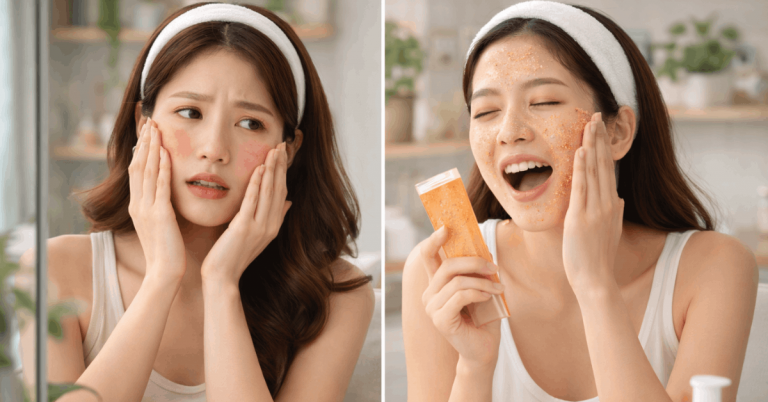 Don’t scrub aggressively—use fingertips with lukewarm water. Cleansing should leave your skin feeling clean and calm, not tight.